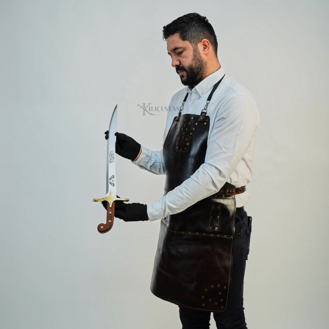 Yüksek karbon oranına sahip 4034 paslanmaz çelik, ısıl işlem ve meneviş sürecinden geçirilerek 52–54 HRC sertliğe ulaştırılmış; böylece kırılganlık azaltılmış ve esneklik kazandırılmıştır. Kılıcın yüzeyi, aslına uygun şekilde matlaştırılmış olup tarihî karakteri güçlendirilmiştir.