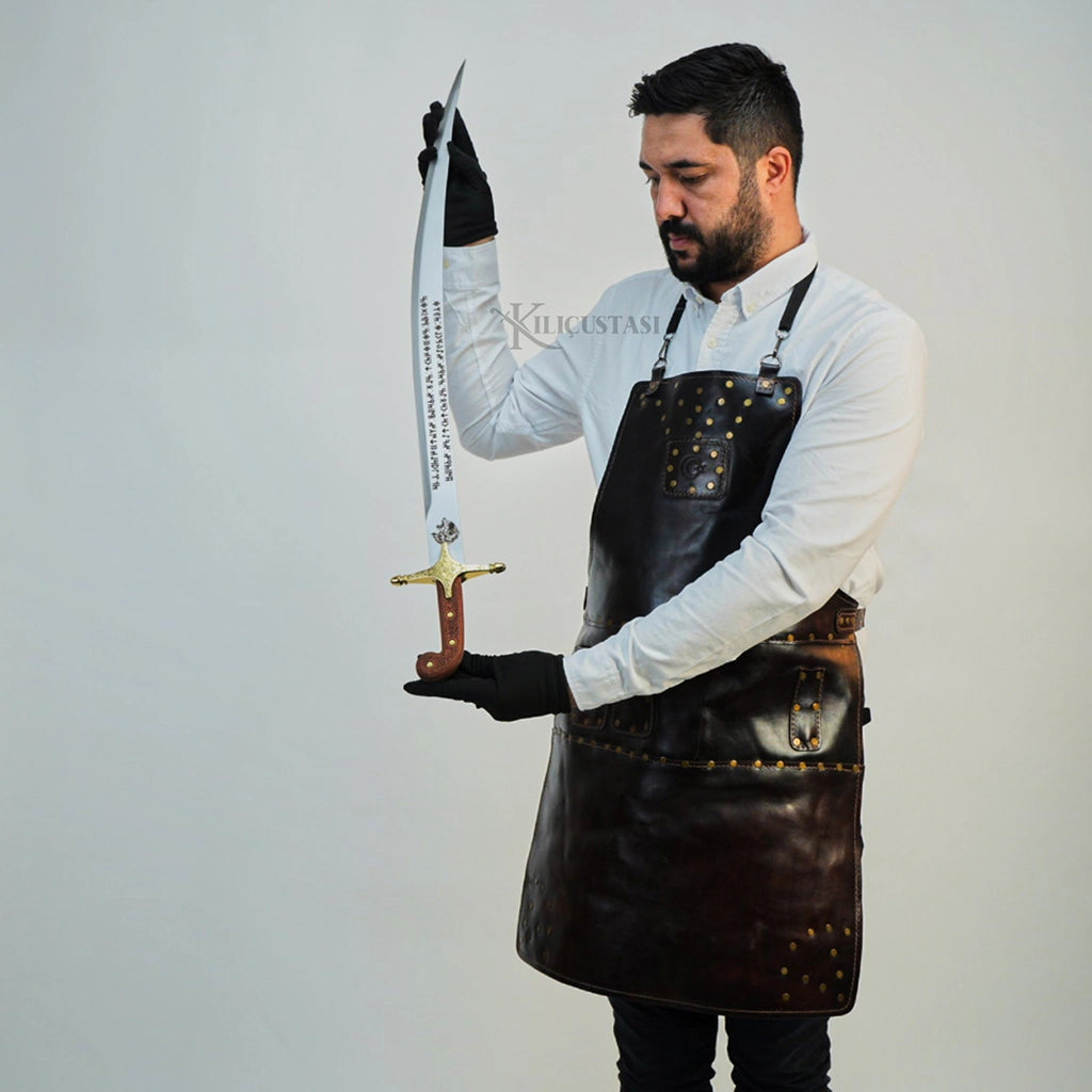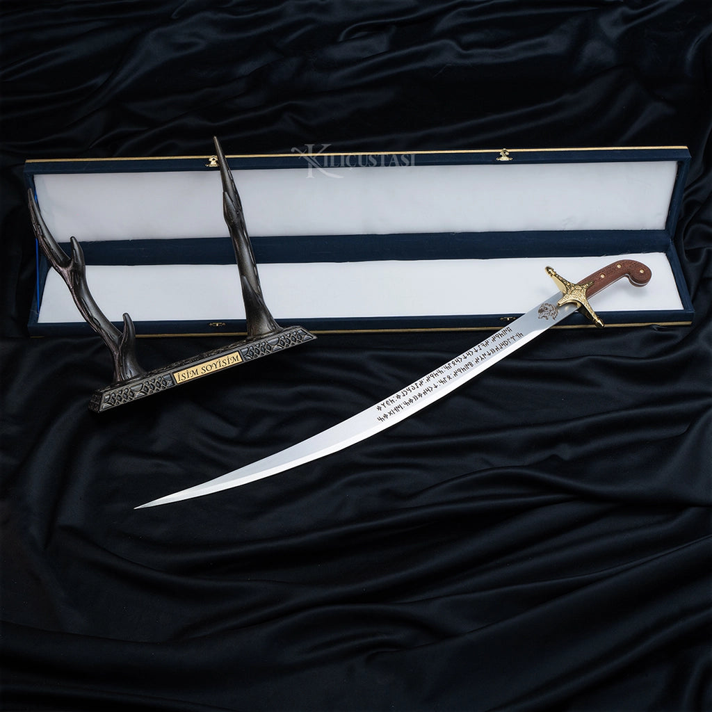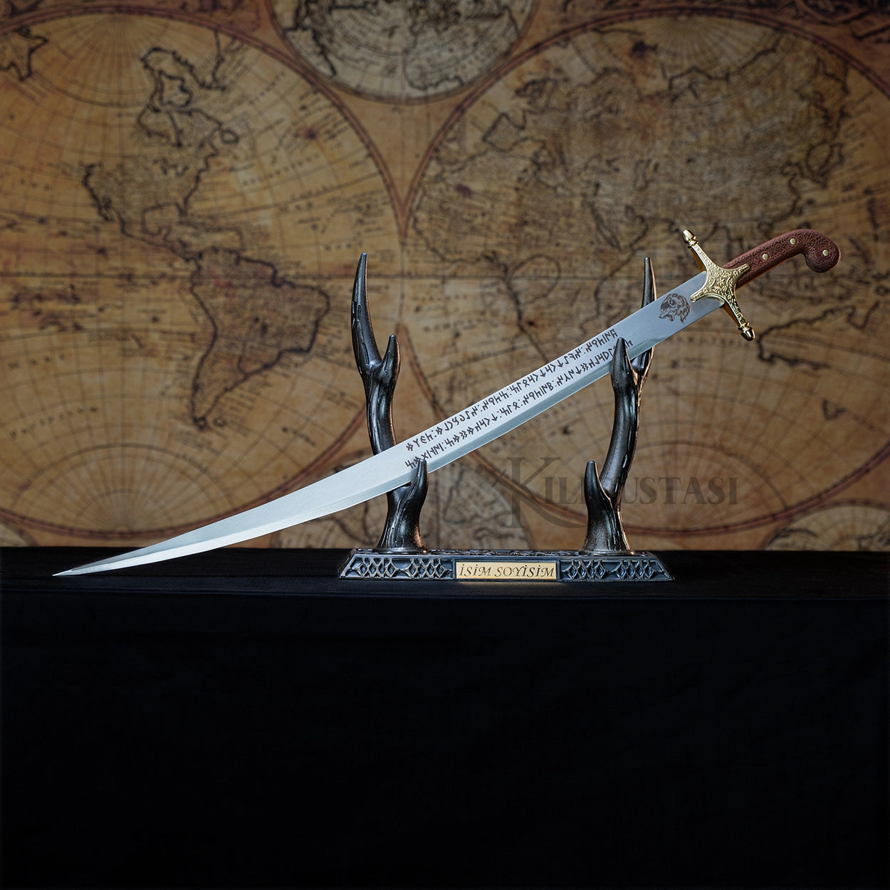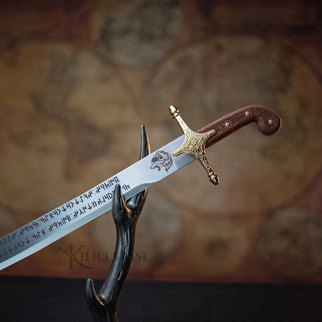 Kılıç üzerindeki yazılar, Türklerin bilinen ilk yazı sistemi olan Orhun Alfabesi ile yazılmış olup, II. Köktürk Kağanlığı dönemine ait yazıtlardan alınan güçlü bir söz taşımaktadır. Bu söz, düşman çokluğundan korkulmaması gerektiğini ve Tanrı buyruğuyla savaşanların yılmaması gerektiğini vurgular. Göktürk ruhunu ve savaşçı kararlılığını günümüze taşıyan bu model, hem tarihsel hem de sembolik açıdan yüksek bir anlam değeri sunar.