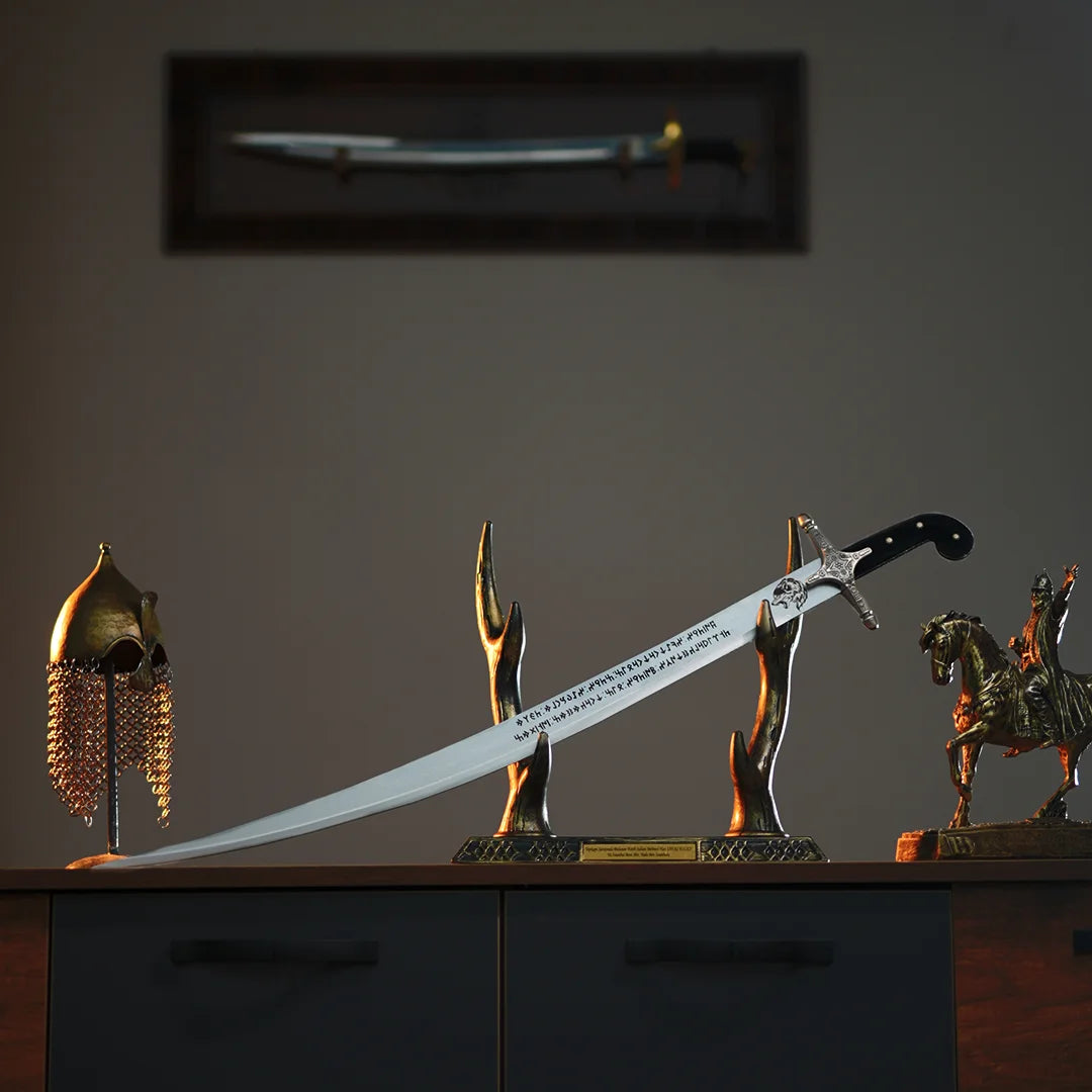 Kılıç üzerindeki yazılar, Türklerin bilinen ilk yazı sistemi olan Orhun Alfabesi ile yazılmış olup, II. Köktürk Kağanlığı dönemine ait yazıtlardan alınan güçlü bir söz taşımaktadır. Bu söz, düşman çokluğundan korkulmaması gerektiğini ve Tanrı buyruğuyla savaşanların yılmaması gerektiğini vurgular. Göktürk ruhunu ve savaşçı kararlılığını günümüze taşıyan bu model, hem tarihsel hem de sembolik açıdan yüksek bir anlam değeri sunar.