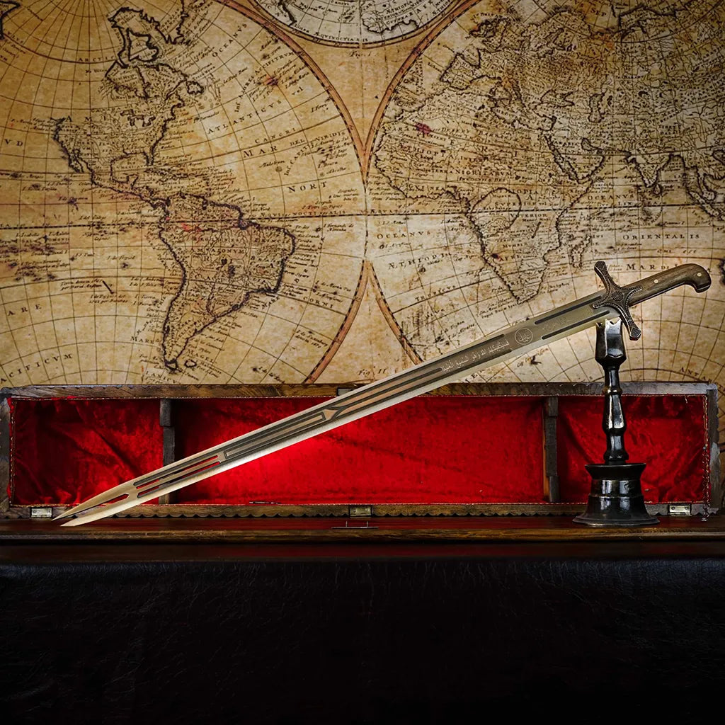 Dört Büyük Halife’nin üçüncüsü olan Hz. Osman (r.a.), İslam tarihinde önemli bir yere sahiptir. Bu özel kılıç, İslam tarihinden günümüze uzanan güçlü bir mirası temsil edecek şekilde, ustalıkla ve büyük bir özenle hazırlanmıştır. Tarihî anlamı ve sembolik detaylarıyla koleksiyon değeri yüksek, prestijli bir parçadır.