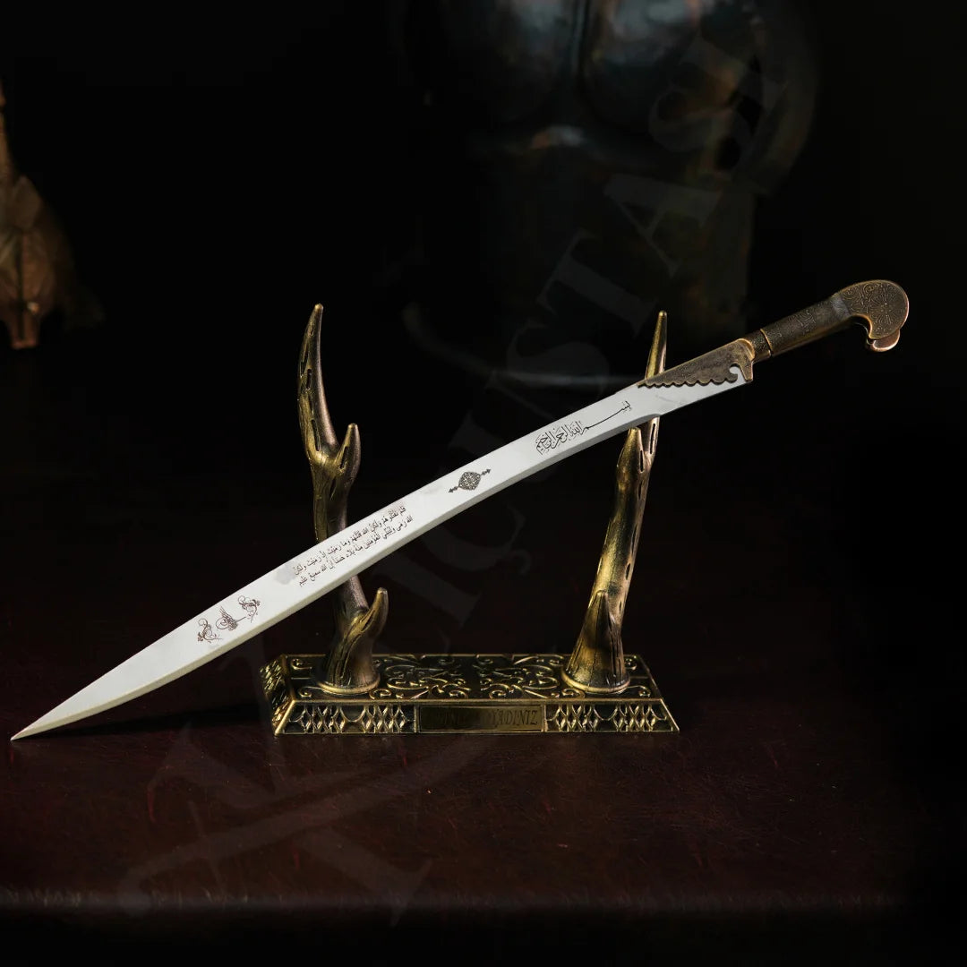 Türk kültürünün ve tarihî kahramanlıkların sembolü olan Yatağan Kılıcı, el emeği ustalığı, özgün formu ve güçlü anlamıyla hem tarih tutkunları hem de koleksiyonerler için özel ve etkileyici bir koleksiyon parçasıdır.